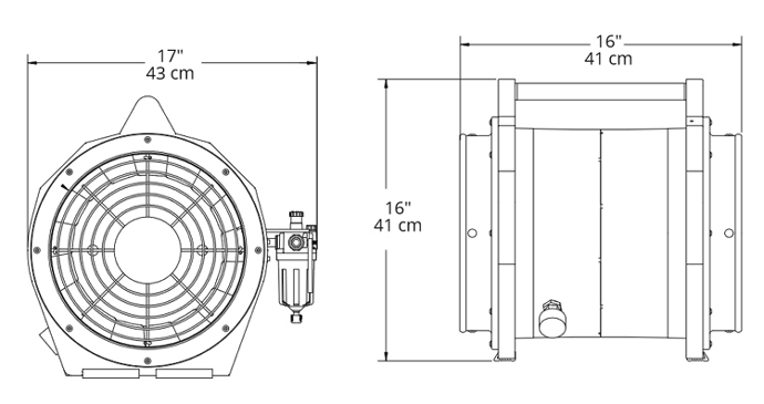 9、紧凑型气动风机, 气动马达在管道外排气。