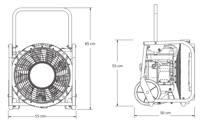 · GX350移动式排烟机是扇叶直径为46cm的汽油驱动正压风机;